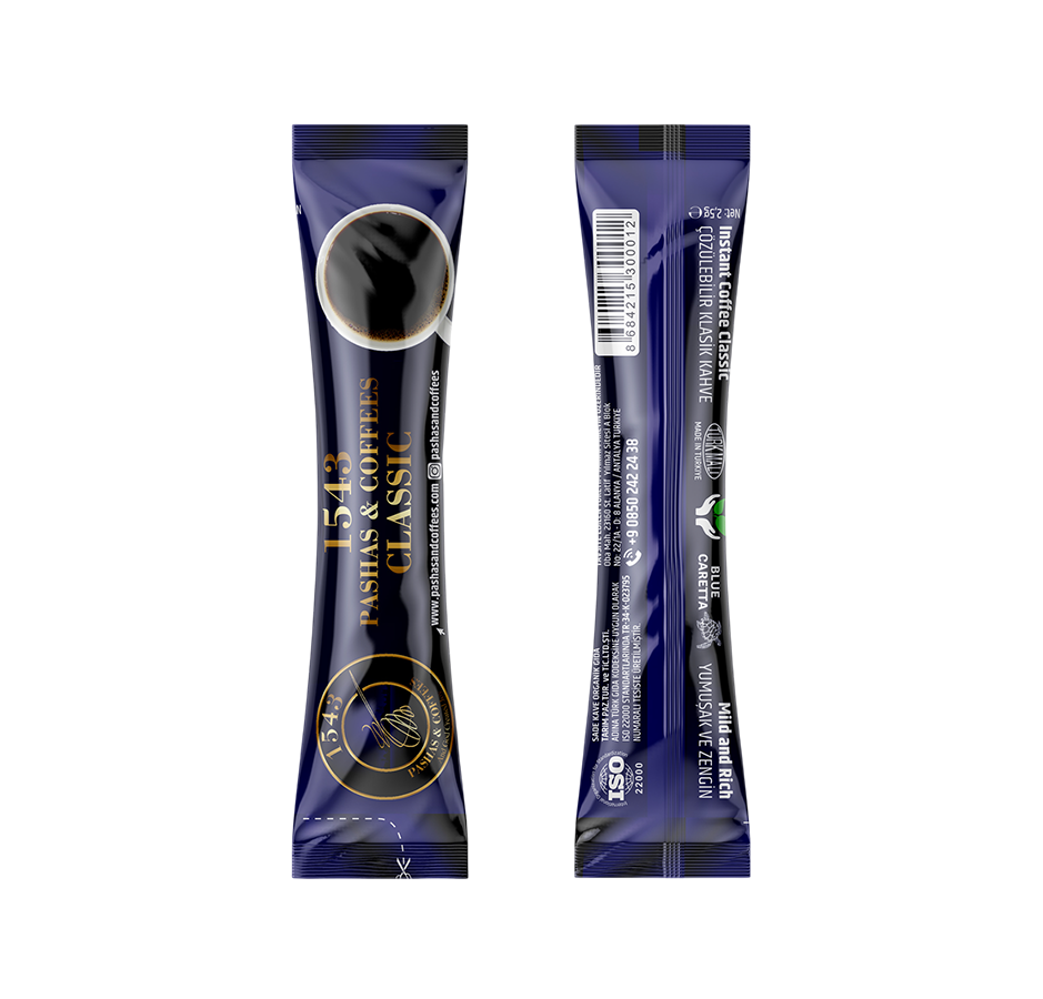 Yumuşak ve zengin aromasıyla çözülebilir klasik kahve, stick formuyla 1543 PASHAS & COFFEES’de! Kahve deneyimine yeni bir boyut getiren 1543 PASHAS & COFFEES Classic Stick, kahve severlere yüksek kalite ve ayrıcalıklı lezzet sunuyor, damaklarda özel bir tat bırakıyor.
